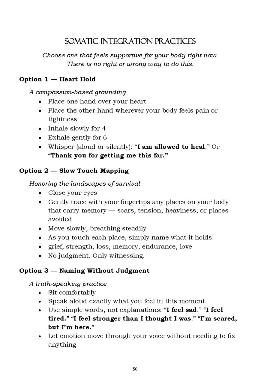 You don’t need to understand everything at once, or move through the pages in any particular way. Some days may invite writing. Others may ask only for quiet presence.Let the work meet you where you are. Return when you need to. Set it down when you don’t. The pace is yours.