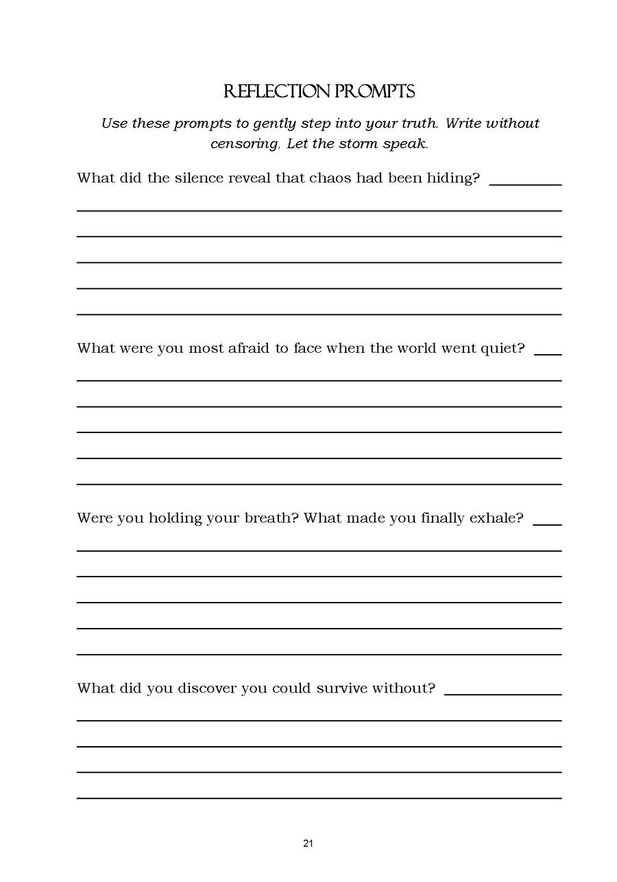 StormWalker is a guided workbook created for people moving through moments of change, boundary-setting, and internal recalibration. It isn’t meant to be completed quickly or followed in a fixed order. Instead, it offers a place to return to — when you need space to think, to breathe, or to simply be with what’s present.This work grew out of lived experience and quiet observation, with the understanding that healing is rarely linear. Rather than offering solutions or instructions, StormWalker holds space — space to reflect, to notice patterns, and to sit with your own thoughts at a pace that feels steady and sustainable.Each section invites you to slow down, listen more closely, and take the next step with intention. Nothing here is meant to rush you toward an outcome. The purpose is presence, not progress.